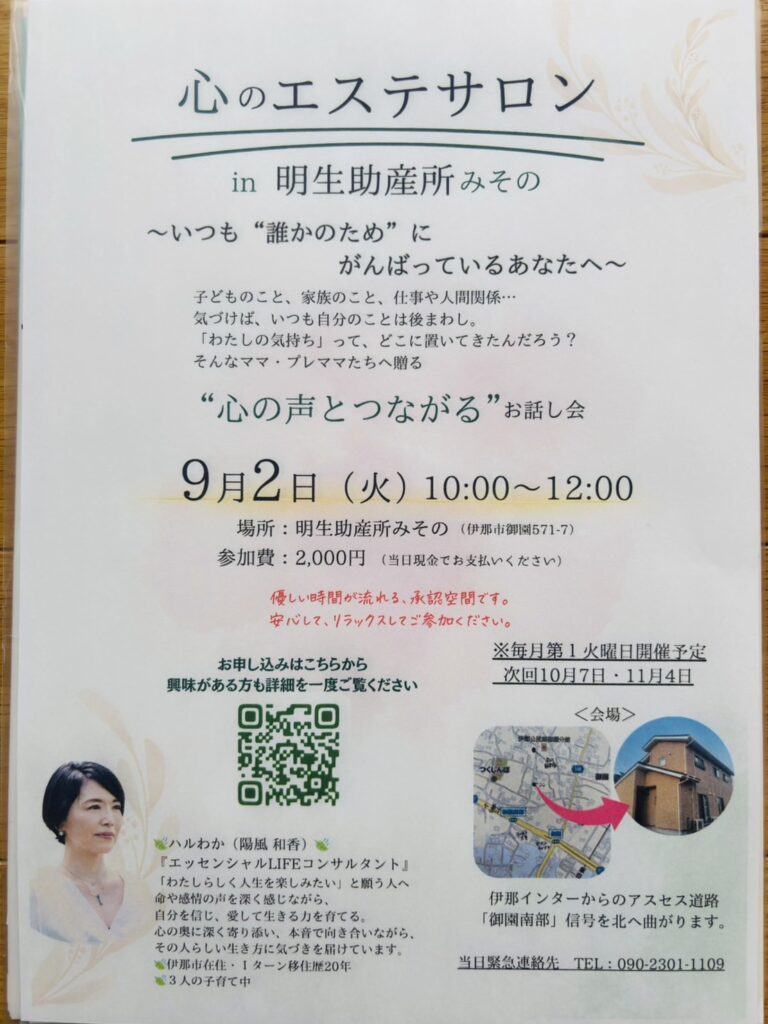~いつも“誰かのため”に、がんばっているママさんたちへ~いつも自分の気持ちは後回しだからこそ、心の声を聴いてあげる時間を自分の心を、見つめる時間をお子様連れで、安心な環境で、ご一緒しませんか?ご参加お待ちしてます♪
